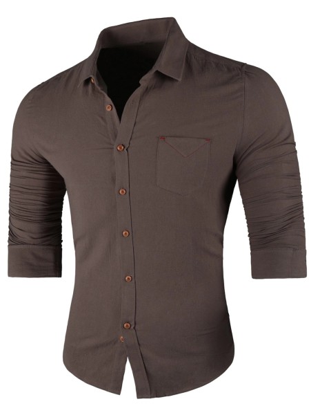 Chest Pocket Long Sleeve Casual Shirt - Cappuccino-0