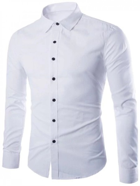 Plus Size Slimming Long Sleeve Shirt - White-0